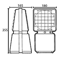 Светодиоды имеют янтарный цвет в стандартной комплектации или красный цвет по специальному заказу и размещаются за прозрачной пластмассовой линзой, окрашенной соответственно излучаемому свету. Линза защищена от повреждений ограждением из нержавеющей стали, крепящимся непосредственно к ударопрчному корпусу лампы из полипропилена.
