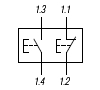 | контактная группа 1НР + 2НЗ, к зажимам 1.3, 1.4, 1.1, 1.2 подключается по 2 проводника сечением до 2,5 мм. кв. | |||