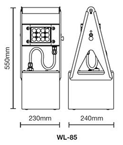 Серия прожекторов представлена двумя моделями: WL-85 с 12 светодиодами, со световым потоком более 1000 люмен и WL-70 c 6 светодиодами, со световым потоком свыше 500 люмен. Обе модели излучают проникающий луч 30°, в сочетании с потоком обрамляющего света более низкого уровня. Светодиодный источник света имеет срок службы 25 000 часов, что подтверждает преимущества технического обслуживания небольшого объема прожекторов.