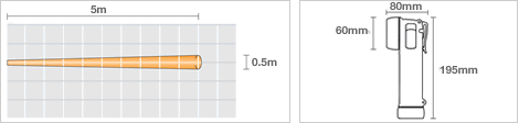 R-50 – 3 Вт сфокусированный луч на светодиодах (6°). Максимальная сила света на расстоянии 5 м составляет 360 люкс
